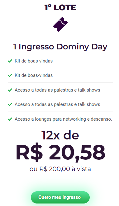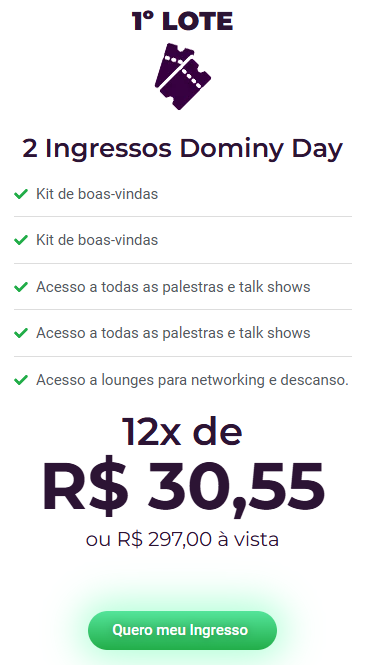 Dominy DAY nas Últimas vagas disponíveis com até 75% desconto! Faça sua inscrição hoje com menor preço.
